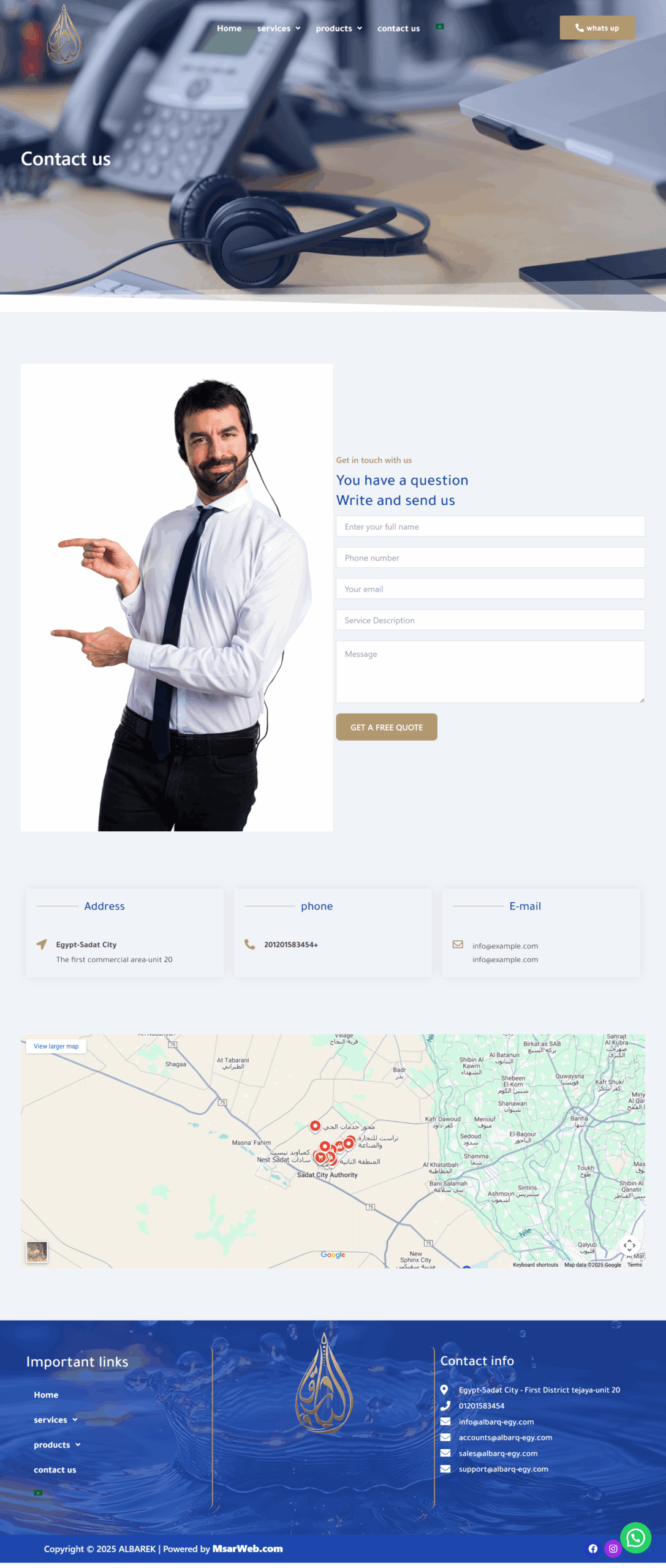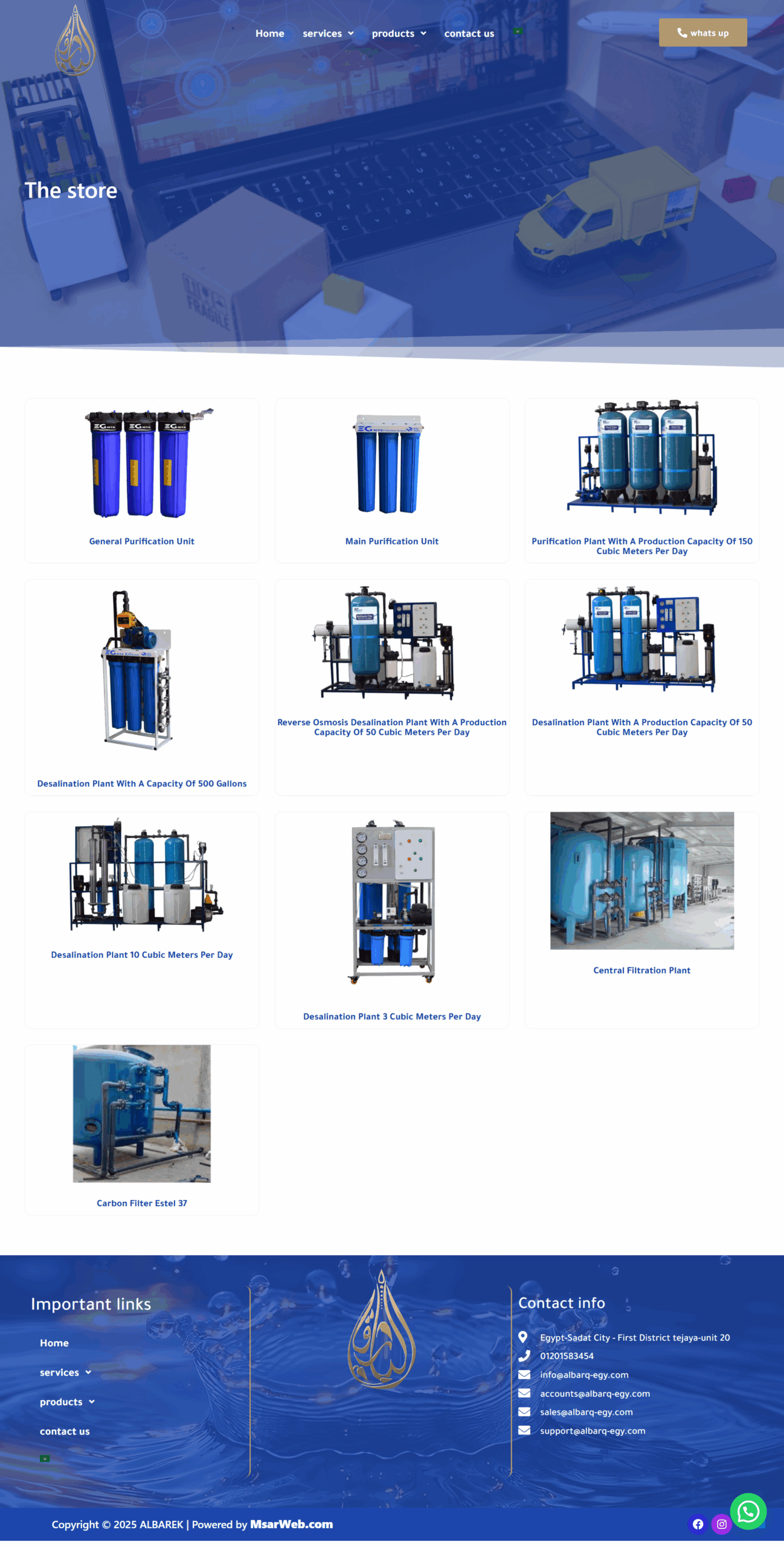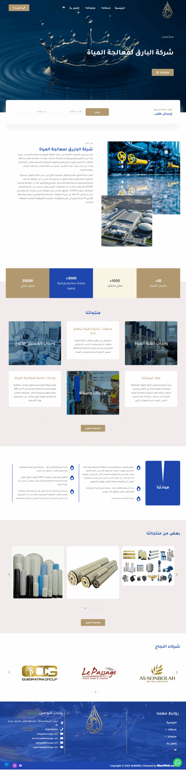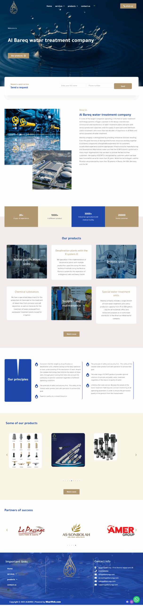 Albarek features a professional website design built around a refined palette of blue tones that reflects the identity of the water treatment industry and its reliance on technology. The layout emphasizes simplicity and clarity, with generous white space and well-structured sections that make navigation smooth and intuitive. The interface is balanced, the icons are clear, and the content is organized in a way that enhances the user experience and presents the company’s services with a clean, professional appeal.