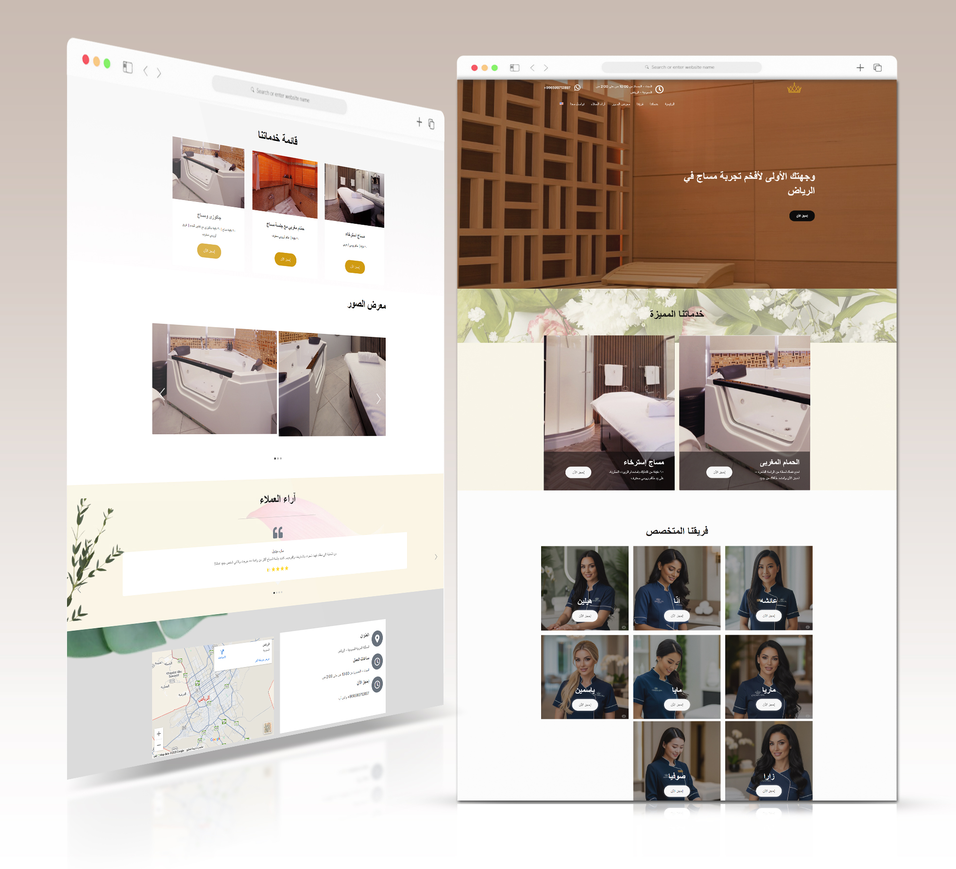 The Crown Massage website is designed as a single elegant page that reflects an atmosphere of relaxation and luxury. It features well-organized sections such as an overview of services, the team, photo gallery, customer reviews, and a contact and booking section, making navigation quick and easy. The simple design allows visitors to discover everything the center offers in one clear and complete experience.