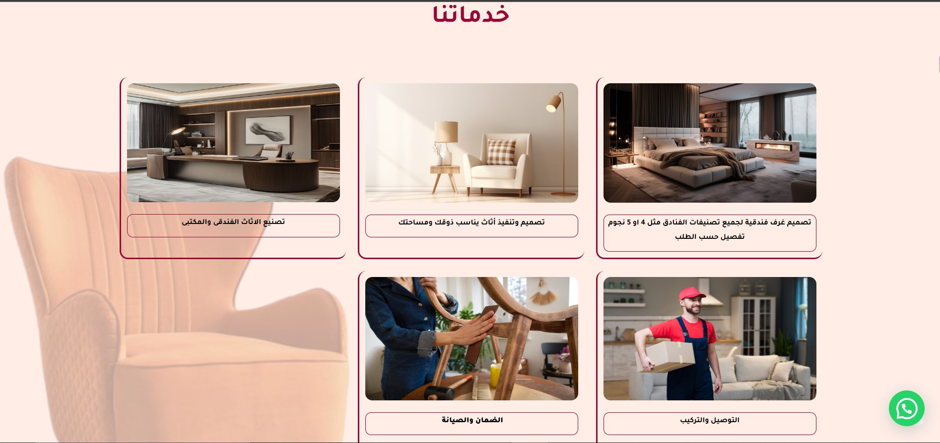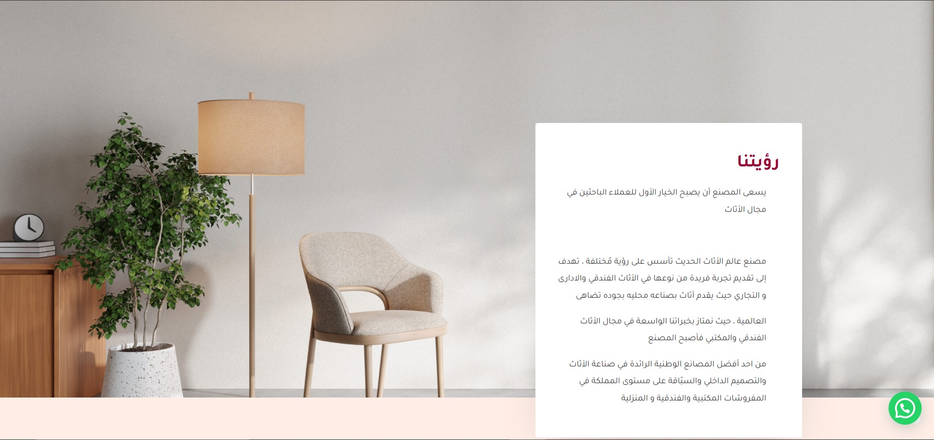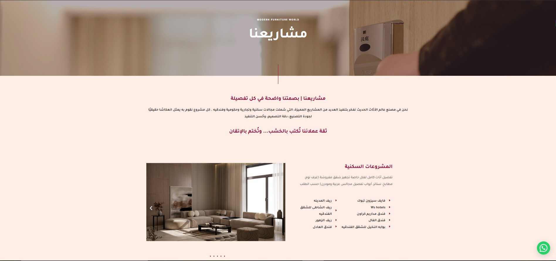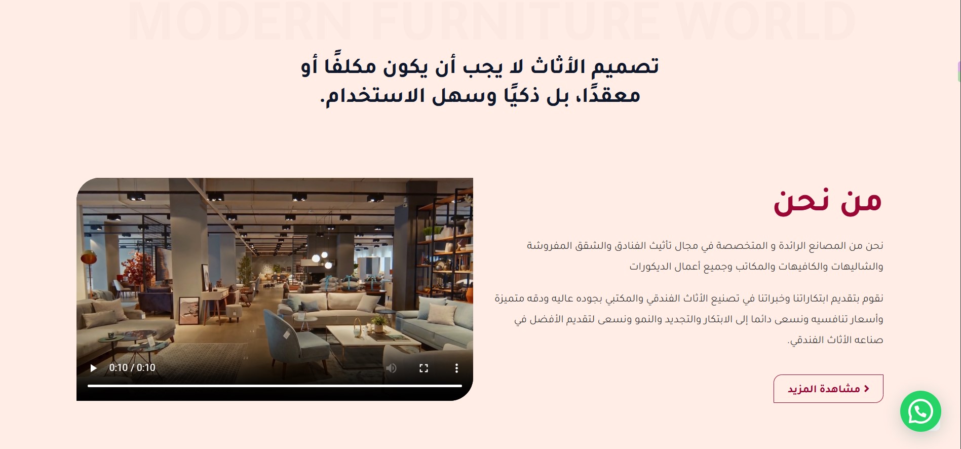 The Modern Furniture World website features an elegant design that reflects luxury and professionalism in the world of furniture and interior design. The main pages include: Home, About Us, Services, Products, Projects, Articles, and Contact Us, making navigation organized and simple. The user experience is smooth, allowing visitors to clearly discover the company’s identity and services, while showcasing projects and products in a modern style that emphasizes quality and precision. Additionally, the Contact page is designed to make it easy for customers to reach out and build trust with the brand.