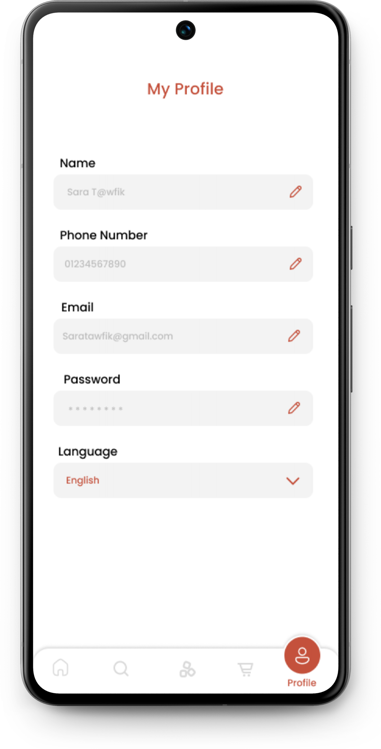 - Profile (name – email – phone number-account deletion )