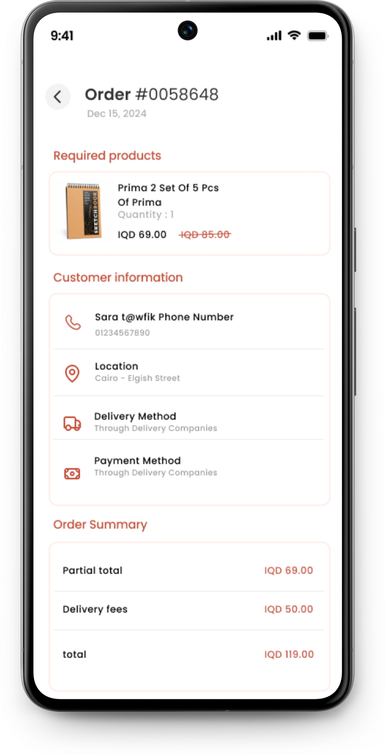 - A delivery company will be connected to the application ( after agreeing on the cost, the client will provide the API of the delivery company ).