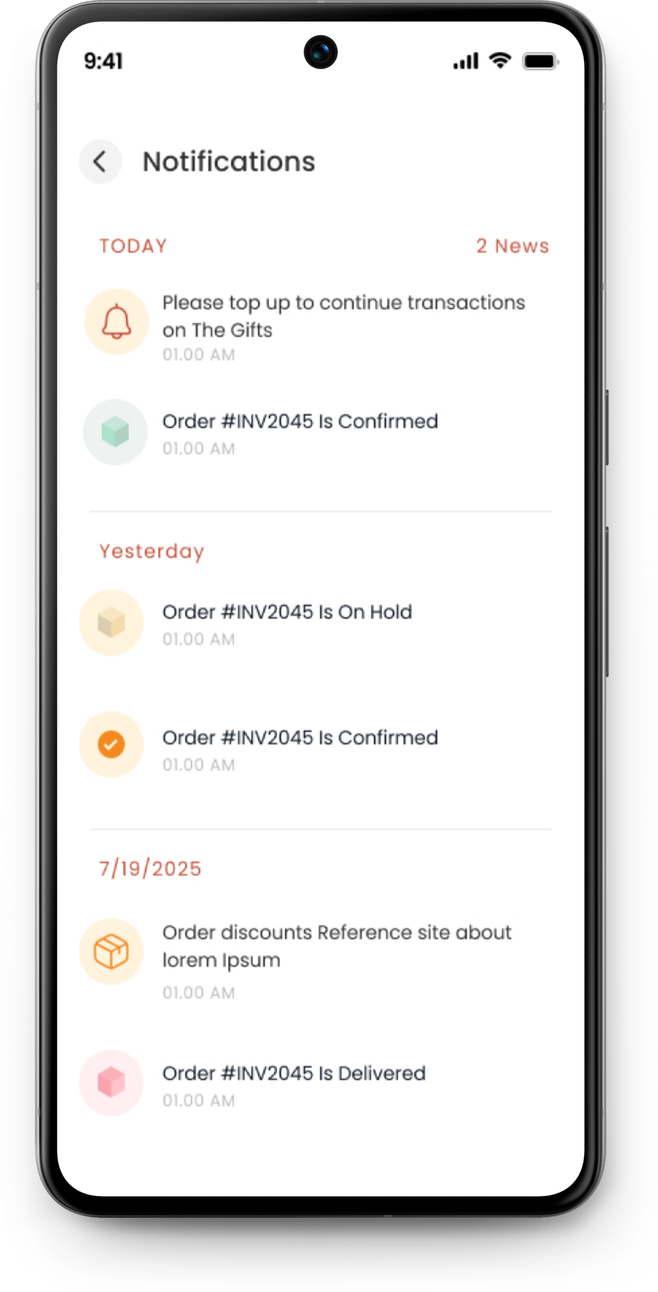 - Updates of orders by notifications.
